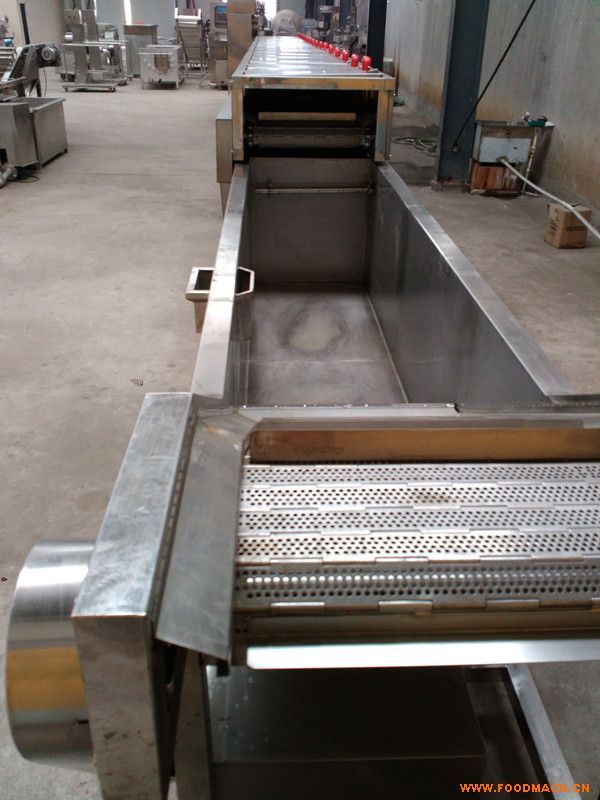 水果梨清洗機(jī)該設(shè)備除電機(jī)、軸承等標(biāo)準(zhǔn)件外均采用不銹鋼SUS304/2B材料制作,完全符合出口食品衛(wèi)生要求。水果梨清洗機(jī)設(shè)備中設(shè)有氣泡發(fā)生裝置,使物料呈翻滾狀態(tài),去除產(chǎn)品表面農(nóng)殘工效,同時可加入適量的藥劑,進(jìn)行消毒固色.漂浮物可從溢流槽溢出,沉淀物從排污口排出,以達(dá)到清洗機(jī)目的!水果梨清洗機(jī)物料進(jìn)入滾筒后通過噴淋管沖洗以及板刷刷洗達(dá)到清洗效果,滾筒下方有兩個水箱,靠近進(jìn)料的清水水箱,進(jìn)水管接清水,靠近出料邊是循環(huán)水箱,從沖孔滾筒洗過物料出來的水源,經(jīng)過水箱中的過濾網(wǎng)過濾二次利用。