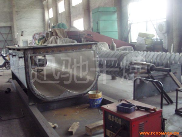 概述 槳葉式干燥器是一種在設(shè)備內(nèi)部設(shè)置攪拌槳.使?jié)裎锪显跇~的攪動(dòng)下.與熱載體以及熱表面充分接觸.從而達(dá)到干燥目的的低速攪拌干燥器。結(jié)構(gòu)形式一般為臥式.雙軸或四軸。 槳葉式干燥器分為熱風(fēng)式和傳導(dǎo)式。熱風(fēng)式即通過熱載體(如熱空氣)與被干燥的物料相互接觸并進(jìn)行干燥.在傳導(dǎo)式中熱載體并不與被干燥的物料直接接觸.而是熱表面與物料相互接觸。傳導(dǎo)式的優(yōu)點(diǎn)是物料不易被污染.排氣量。疅嵝矢撸w積相對。欣诠(jié)約能源及防止空氣污染;