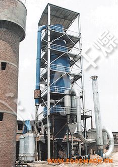 壓力噴霧干燥機(jī)工作過(guò)程為:料液通過(guò)隔膜泵高壓輸入,噴出霧狀液滴,然后同熱空氣并流下降,大部分粉粒由塔底排料口收集,廢氣及其微小粉末經(jīng)旋風(fēng)分離器分離,廢氣由抽風(fēng)機(jī)排出,粉末由設(shè)在旋風(fēng)分離器下的收粉筒收集,風(fēng)機(jī)出口處還可裝備二級(jí)除塵裝置,回收率在96%-98%。