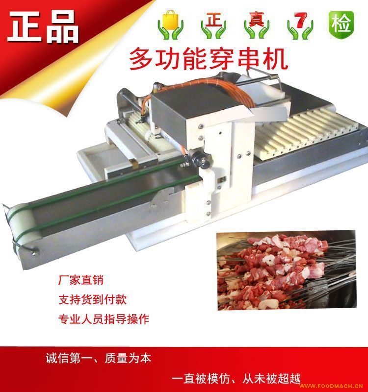 能穿牛、羊、雞肉串,雞珍串,雞心串,魷魚(yú)串,豆腐塊,海帶結(jié)等串制品;穿出來(lái)的串大小均勻,干凈衛(wèi)生、無(wú)揉搓、口感好;用戶可根據(jù)喜好可以在肉串任意位置添加肥油;肉串長(zhǎng)短在要求的范圍內(nèi)可任意調(diào)整;可隨便磕、晃、無(wú)郎當(dāng)?shù)、無(wú)掉塊的,是肉串生產(chǎn)企業(yè)及個(gè)人用戶的理想選擇。