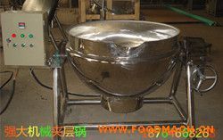 應(yīng)用廣泛的夾層鍋可用于多種行業(yè),例如用于豆瓣醬、甜面醬、花生醬、辣椒醬、牛肉醬等各種醬類的的調(diào)配,殺菌工藝。罐頭食品中的應(yīng)用:用于物料的預(yù)煮和混合。蜜餞中的應(yīng)用:可以用于蜜餞中的預(yù)煮(脫苦),糖煮沸工藝?捎糜诓枞~的浸取及其它物料的預(yù)煮,加熱,混合。糕點(diǎn)中的應(yīng)用:油炸工藝(加熱溫度*,可調(diào)控)。 糖果中的應(yīng)用:(常壓熬糖硬糖生產(chǎn))砂糖和淀粉糖漿配料,溶化,熬煮,調(diào)和(帶攪拌和刮邊)。具有受熱面積大,熱效率高,加熱均勻,加熱溫度容易控制,操作簡(jiǎn)單的特點(diǎn)。