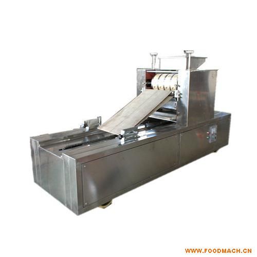 | 桃酥機是根據(jù)市場需要,結(jié)合桃酥手工制作工藝設(shè)計而成的桃酥生產(chǎn)專用設(shè)備.該機可用于隧道式鋼(網(wǎng))帶烤爐,隧道式鏈條烤爐,隧道式手推烤爐,及熱風(fēng)旋轉(zhuǎn)烤爐。 桃酥機組成: 該機由模具成型系統(tǒng)和托盤鏈條輸送系統(tǒng)兩大部分組成,分別由調(diào)速電機帶動,生產(chǎn)速度可以調(diào)節(jié).成型系統(tǒng)設(shè)置有喂料輥,模具輥和橡膠輥,將調(diào)制好的面料放入料斗,通過喂料輥及模具輥的喂料擠壓,而成形為桃酥坯料,然后經(jīng)過由膠輥拖動的帆布帶將坯料輸送到烤盤上.托盤鏈條由調(diào)速電機帶動,桃酥坯料在平盤上的間距可根據(jù)生產(chǎn)需要而定. RH-400型自動桃酥機是在酥性餅干生產(chǎn)設(shè)備的基礎(chǔ)上結(jié)合桃酥手工工藝設(shè)計而成的桃酥專用生產(chǎn)設(shè)備.該機采用了先進的雙變頻(220v;380v)技術(shù)裝置,自動調(diào)速,對于三相電源裝備難的客戶也可以使用。主要用于托盤的鏈條烤爐,手推式烤爐,或熱風(fēng)旋轉(zhuǎn)爐.該桃酥機克服了手工操作的缺點,具有效率高,質(zhì)量穩(wěn)定,產(chǎn)品均勻,節(jié)省人工降低成本,更換模具(模具具有多樣化)可以生產(chǎn)方形酥.圓形酥.橢圓形酥、帶字桃酥、宮廷酥、盧果和酥性餅干等不同形狀不同大小的酥性餅干產(chǎn)品.該機又在原來的基礎(chǔ)上設(shè)計而成了自動翻盤(反正盤都能用)和自動擺盤功能(可根據(jù)客戶對一烤盤里面需要擺多少桃酥進行設(shè)計),和自動撒芝麻(瓜子)功能,以及防打滑裝置,是大.中.小食品企業(yè)的理想選擇. 所出產(chǎn)品形狀均勻,紋裂清晰。產(chǎn)量高, 現(xiàn)桃酥機外殼全不銹鋼制作,采用進口電機.保證了產(chǎn)品的質(zhì)量,保證百分百脫!,F(xiàn)桃酥機采用雙皮帶的設(shè)計,使生產(chǎn)過程中的碎料可自動落入底部,節(jié)省了用料,使一盤產(chǎn)品更加的干凈另可根據(jù)用戶需要定制各種桃酥機專用模具。