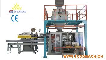 3、裝袋機(jī):自動(dòng)裝袋機(jī)能自動(dòng)連續(xù)取袋、開袋、自動(dòng)檢測(cè)、自動(dòng)裝袋等。電子定量秤內(nèi)放好的物料通過料斗計(jì)量后裝入料袋,并將料袋傳送到立袋輸送機(jī)上。該部機(jī)可實(shí)現(xiàn)氣爪手夾袋,真空吸盤開袋,正、負(fù)壓檢測(cè)自動(dòng)棄袋等功能;