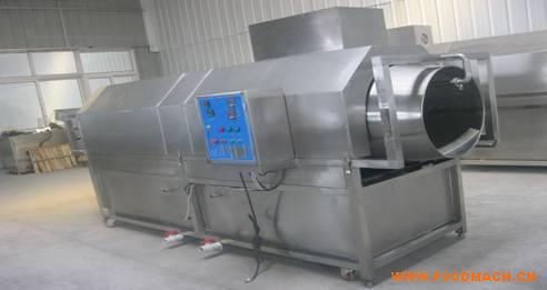 工作原理:物料由人工傾入滾筒內(nèi),(也可加傳送帶代替人工)經(jīng)過(guò)*道循環(huán)高壓噴淋清洗(加堿水),水溫可調(diào)節(jié)至40-60度之間,溫水清洗,加快清洗效率。經(jīng)過(guò)旋毛刷進(jìn)入第二道清水噴淋區(qū),清水噴淋洗掉物料上的洗液后,經(jīng)過(guò)螺旋毛刷滾出,進(jìn)入下道工序(震動(dòng)瀝干機(jī)),本機(jī)速度控制是變頻調(diào)速,可根據(jù)物料大小、清洗量自由調(diào)節(jié),大大縮短了人力物力,提高了工作效率。