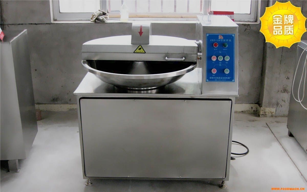 斬拌機(jī)是肉制品生產(chǎn)工藝中的關(guān)鍵設(shè)備,高速旋轉(zhuǎn)的斬拌刀可把原料肉斬拌成細(xì)膩的糜狀,同時(shí)可以把其它輔料攪拌均勻,是賓館、酒家、食堂、肉類加工場(chǎng)等單位所不可缺少的肉類加工機(jī)械。