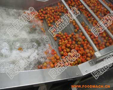 蔬菜清洗機(jī)流水線采用水浴式氣泡清洗,物料在水中通過氣泡在釋放過程中產(chǎn)生的翻騰效果,使物料在水中發(fā)生不規(guī)則的強(qiáng)烈翻轉(zhuǎn)運(yùn)動(dòng),通過物料的運(yùn)動(dòng)有效分離被清洗物表面附著物,模擬人工清洗基本動(dòng)作,同時(shí)由于物料是在汽水混合物中產(chǎn)生的翻騰運(yùn)動(dòng),有效避免了清洗過程中產(chǎn)生的碰、磕、劃傷等對物料的損傷現(xiàn)象,提高了工作效率,變?nèi)斯ぷ鳂I(yè)為機(jī)械化加工。適合于各種新鮮水果、蔬菜、鹽漬菜、菌類、海產(chǎn)品。
