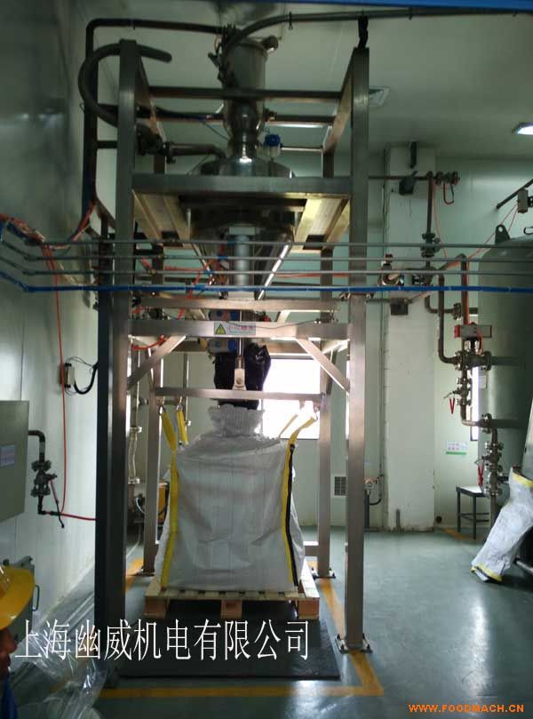 加料過程結(jié)束后,四個掛袋氣缸動作使掛袋鉤自動松開吊帶,夾袋裝置自動打開,松開包裝袋的進料口,吸塵閥在延時一定的時間后自動關(guān)閉,等裝滿料的包裝袋落到托盤上后,由操作工按下輸送按鈕啟動鏈板輸送機將料袋輸送出包裝位置,待叉車來把托盤運走。噸袋包(灌)裝機http://www.shuvjd.net/index.php?_m=mod_product&_a=view&p_id=184