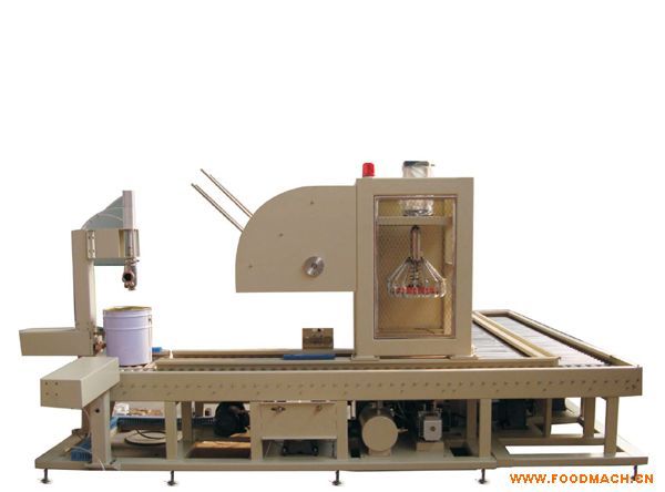 由不銹鋼動力滾筒輸送線、上桶工位、灌裝工位、上蓋工位、壓蓋工位、定位裝置、上桶裝置、出桶裝置、電器控制柜、氣動控制等組成的機電氣一體化產(chǎn)品。