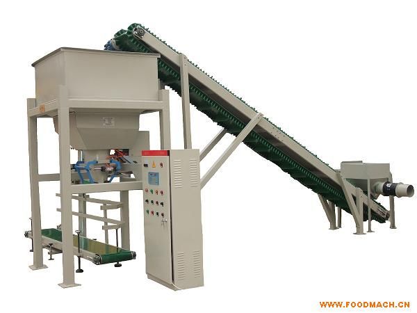 4主機,傳送帶,縫包機,控制器聯(lián)網(wǎng),確保人性化操作,降低工人勞動強度,采用自流下料,大、中、小、三開氣缸控制計量,無斗稱重,抗干擾并實現(xiàn)誤差自動補償和修正。