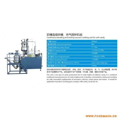 | 奶糖充氣熬糖鍋特點(diǎn): 1.PLC自動(dòng)編程控制真空熬糖溫度、時(shí)間、澆注溫度和澆注速度; 2、3.5英寸大LED觸摸屏顯示,易于操作; 3、生產(chǎn)能力可由每小時(shí)150公斤到450公斤; 4、變頻調(diào)速控制糖液流量; 5、衛(wèi)生結(jié)構(gòu)設(shè)計(jì); 6、連續(xù)性真空熬糖,使熬糖溫度達(dá)到140℃以上; |