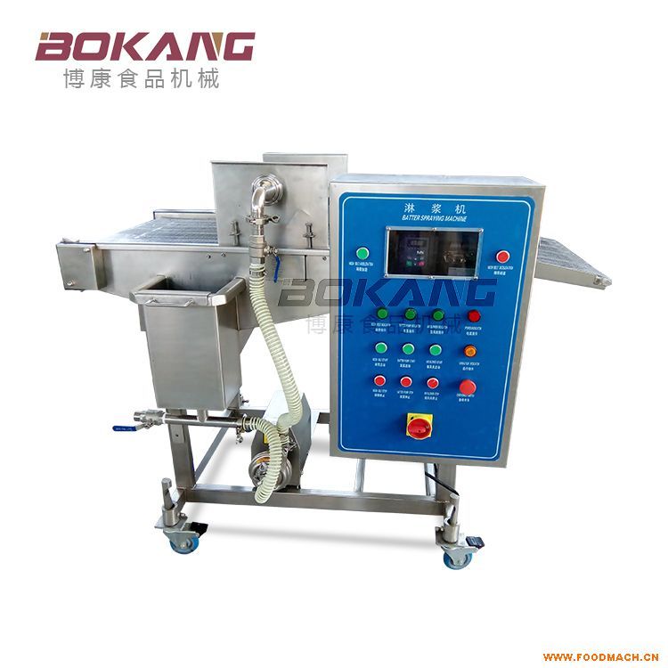 上漿機(jī)是通過漿幕和底部的面糊浴槽將面糊均勻裹涂在雞肉、牛肉、豬肉、魚蝦等海鮮產(chǎn)品上,適用于上面包屑及上粉前的工序。適用范圍:條狀、塊狀、片狀產(chǎn)品裹漿;水產(chǎn)品深加工過程中的蝦仁、蝴蝶蝦、魚片、魚塊表面面包屑的包裹;方便食品類型中的薯片、薯塊等表面味料的包裹。
