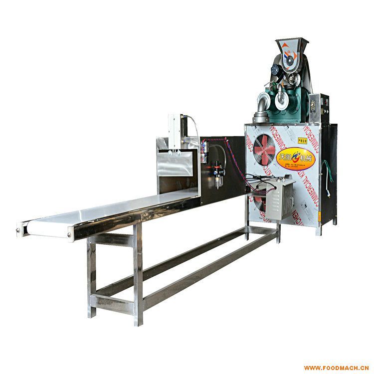 雜糧面條機TYG-DZ型由自動下料器、雙螺桿壓面機、冷卻風(fēng)扇、皮帶輸送機、數(shù)控切斷機組成,總裝機功率12KW(下料器0.4KW,壓面機11KW,風(fēng)扇0.4KW,輸送機電機0.12KW)時產(chǎn)150-200公斤,動力價格13500元,不含運費。