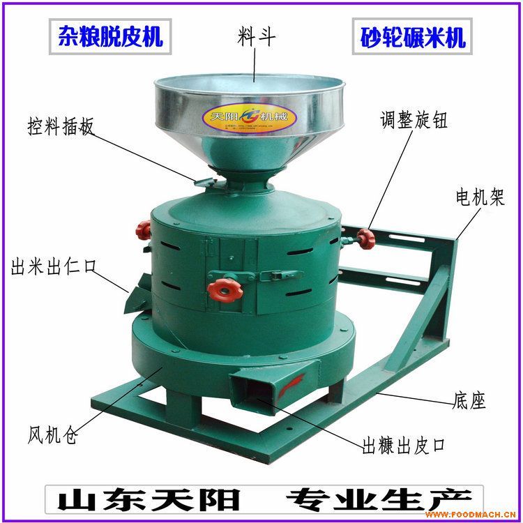 五谷雜糧脫皮機(jī)主要用來加工谷子碾米和高粱的去皮成米,以及玉米、大小麥、綠豆、蠶豆、燕麥、大豆等五谷雜糧及中藥地膚子脫皮加工、香附除毛等,谷物特別是玉米經(jīng)過脫去了堅(jiān)硬的皮殼和胚芽部分,改善了玉米的食用口感效果,擴(kuò)大了玉米的應(yīng)用范圍,脫皮后玉米磨粉加工玉米面條*暢銷。谷物脫皮碾米機(jī)內(nèi)有砂輪、篩片和磨米刀,在機(jī)座下部設(shè)有風(fēng)扇,在機(jī)身上均布有排糠通道,該機(jī)主軸是由長軸和短軸相互插接而成,在長軸與短軸的插接間隙處設(shè)有軸承,長軸和短軸與電機(jī)分別連接且設(shè)在長軸上的帶輪大于設(shè)在短軸上的帶輪,風(fēng)扇安裝在短軸下部,砂輪為疊加安裝在長軸上,可實(shí)現(xiàn)風(fēng)扇與砂輪的差速旋轉(zhuǎn),提高排糠量,即使長時間工作也不會造成糠皮的堆積,降低了谷物破碎率,加工后的谷物中不會摻雜糠皮,谷物脫皮后無需進(jìn)行篩糠處理,大大提高了谷物脫凈率和加工效率。TYT200型適用2.2-3千瓦(220V)電機(jī),產(chǎn)量: 200 kg/h,外型尺寸:750×400×850mm,重量75Kg,價格1850元,含電機(jī)加900元;TYT350型適用動力7.5千瓦(380V),產(chǎn)量:500-600 kg/h,外型尺寸:1000×570×980mm,重量135kg,價格:2800元,含電機(jī)加1500元。