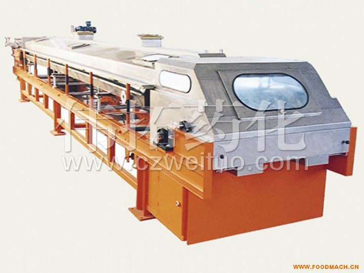 該機由液體變固體粒狀,主要是通過造粒模頭造粒,采用回轉(zhuǎn)式鋼帶連續(xù)進行,通過噴淋水冷卻定型。