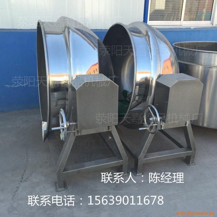 鄭州天嘉機械生產(chǎn)的夾層鍋鍋體為整體一次旋壓成型,無焊接,全304不銹鋼制造,食品專業(yè)不銹鋼材料,符合HACCP衛(wèi)生標準。攪拌方式采用獨特的傾式傳動,使攪拌器與鍋體充分接觸,使鍋內(nèi)無攪拌死角。