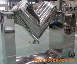 V形混合機由“V”形筒、機架、減速傳動、攪拌葉片等構成。該機的工作過程是:把需混合的幾種物料通過真空輸送或人工加料投放到“V”形筒內,上好筒蓋,開起設備,“V”形筒及攪拌葉片同時轉動,旋轉的“V”形筒使筒體內物料產生紊亂翻滾混合,使物料在筒體內快速混合。V形混合機工作過程無死角,無沉積,可使混合的物料快速達到均勻一致的效果。